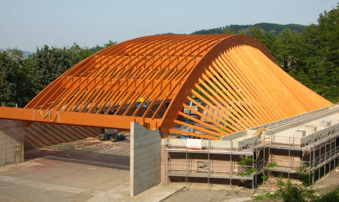 Progettazione statica e sismica del nuovo centro sportivo sito nel Comune di Lizzano in Belvedere e verifica delle strutture con un modello 3D ad elementi finiti. Il cliente doveva realizzare la copertura in legno lamellare di un impianto polivalente caratterizzato da una struttura con luce libera di 60 m e andamento curvilineo variabile. La progettazione e realizzazione della copertura in legno ha richiesto l’ottimizzazione del progetto esistente e la predisposizione del progetto esecutivo e costruttivo.